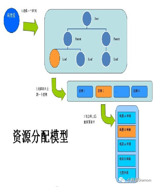 在Step1中选好了叶子队列后,取该队列中最早提交的应用程序(实际排序时用的 Application ID,提交时间越早的应用程序,Application ID 越小)。
