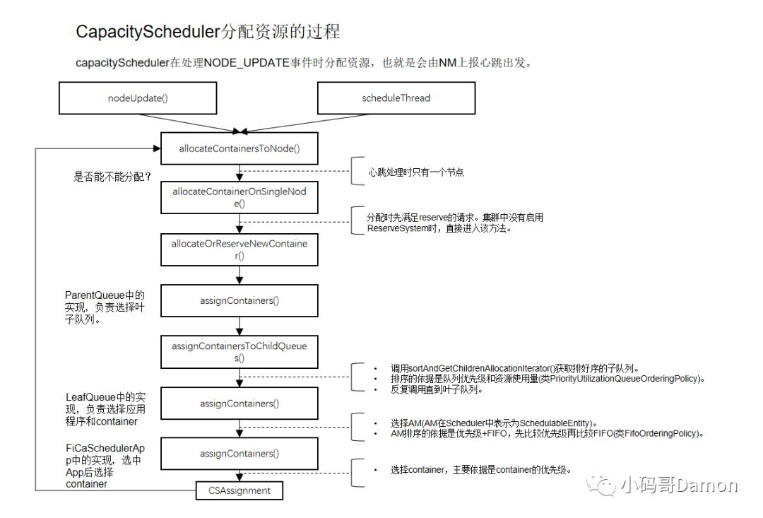 处理完以上两类信息后,Capacity Scheduler将节点上的空闲资源分配给应用程序。
