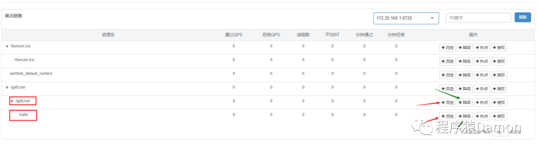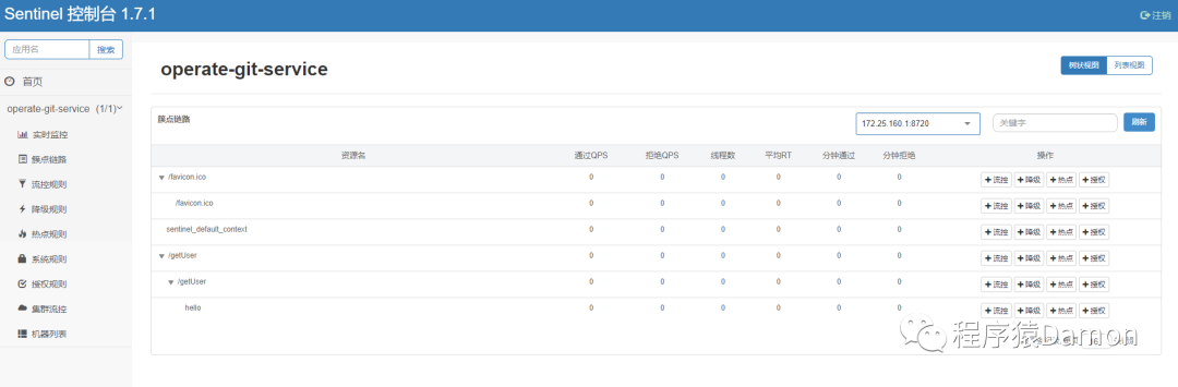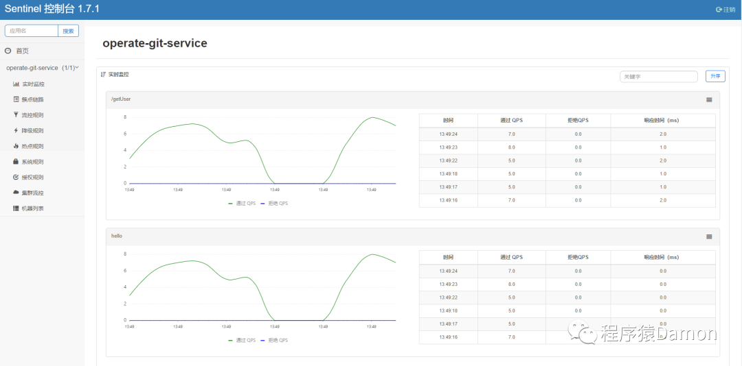同样,我们先打开 Sentinel 的Dashboard,看看其服务实时监控(如果没有则先请求几个接口):