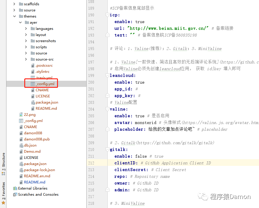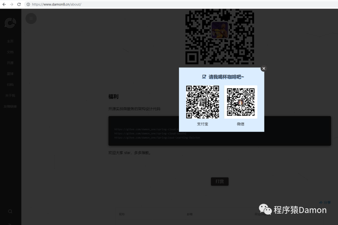 这个里面可以根据官网配置自己想要的功能,包括打赏:
