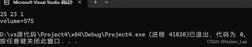 输出长方体的体积。