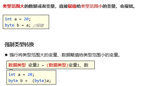 赋值时的自动类型转换:小范围的类型可以直接赋值给大范围类型