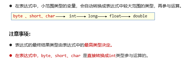 !!!!在表达式中,byte、short、char 是直接转换成int类型再参与运算的!!!!