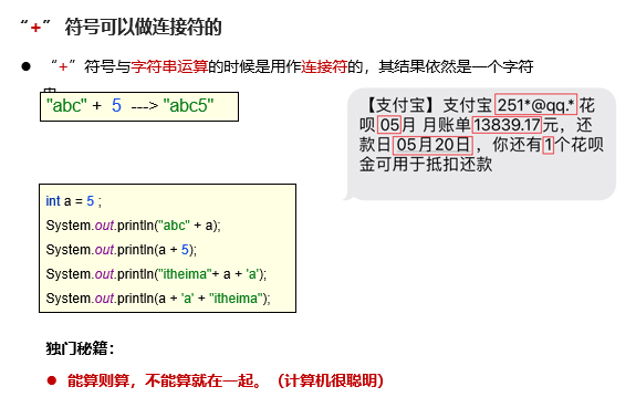 “+” 符号可以做字符串连接符: 能算则算,不能算就在一起