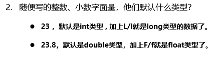 在java代码中写的整数字面量默认是int类型,浮点数字面量默认是double类型