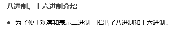 八进制和十六进制的出现是为了便于观察和表示二进制:因为可以直接从八进制和十六进反推出二进制。