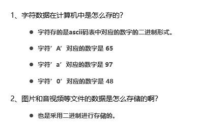 字符数据存的是ascii码中字符对应的数字的二进制
