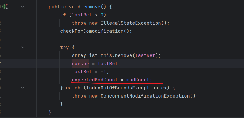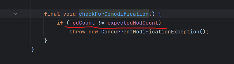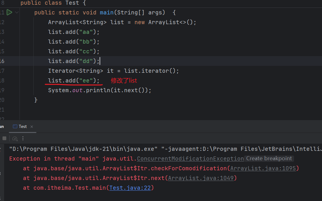 如果在得到 Iterator 后,又使用 list.add("ee") 或者list.remove(xxx)等方法修改了列表结构。之后,使用迭代器遍历,就会触发 ConcurrentModificationException,因为 Iterator 是“快速失败(fail-fast)”的,它检测到列表在迭代过程中被修改,就会抛出异常以避免不一致的状态。