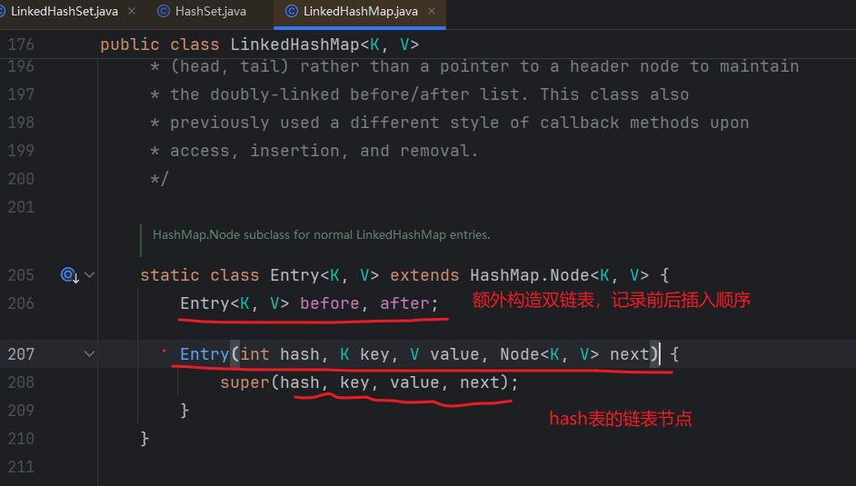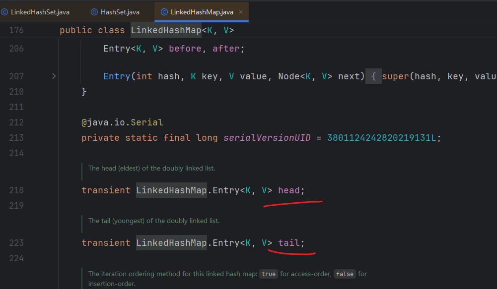 LinkedHashSet基于LinkedHashMap实现。有头指针和尾指针: