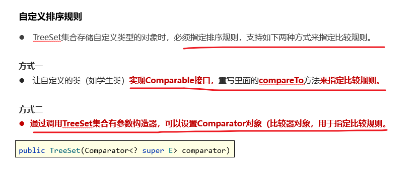 !!!!TreeSet集合存储自定义类型的对象时,必须指定排序规则,支持如下两种方式来指定比较规则: