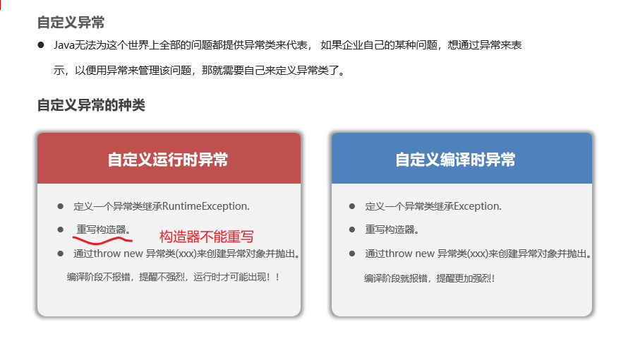实际使用的时候,更常用的是自定义运行时异常!!!!!!