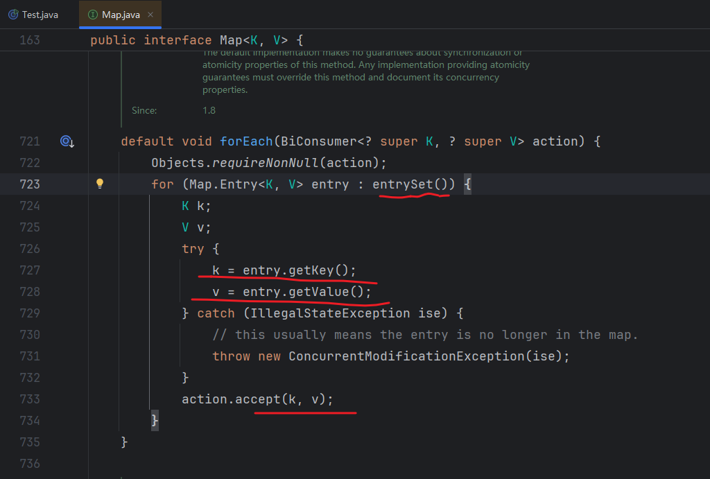 Map类的forEach方法源码如下(基于entrySet遍历):