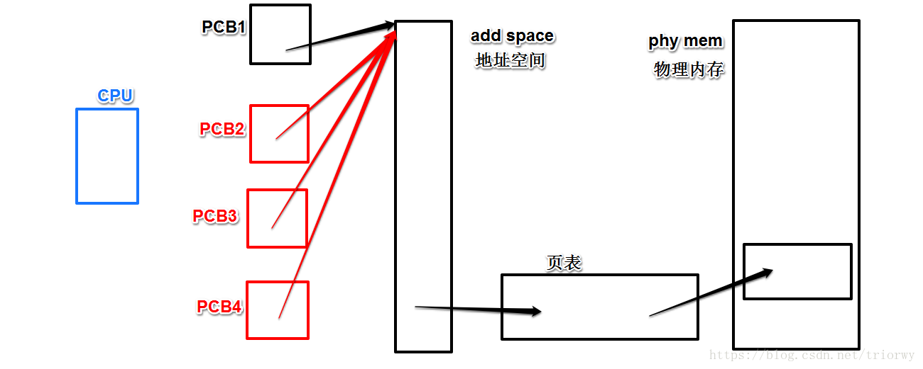 PCB1相当于主线程,新线程PCB2、PCB3、PCB4相当于用vfork创建出来的,它们指向同一块地址空间,它们隶属于同一个进程,但是他们有着自己的线程ID