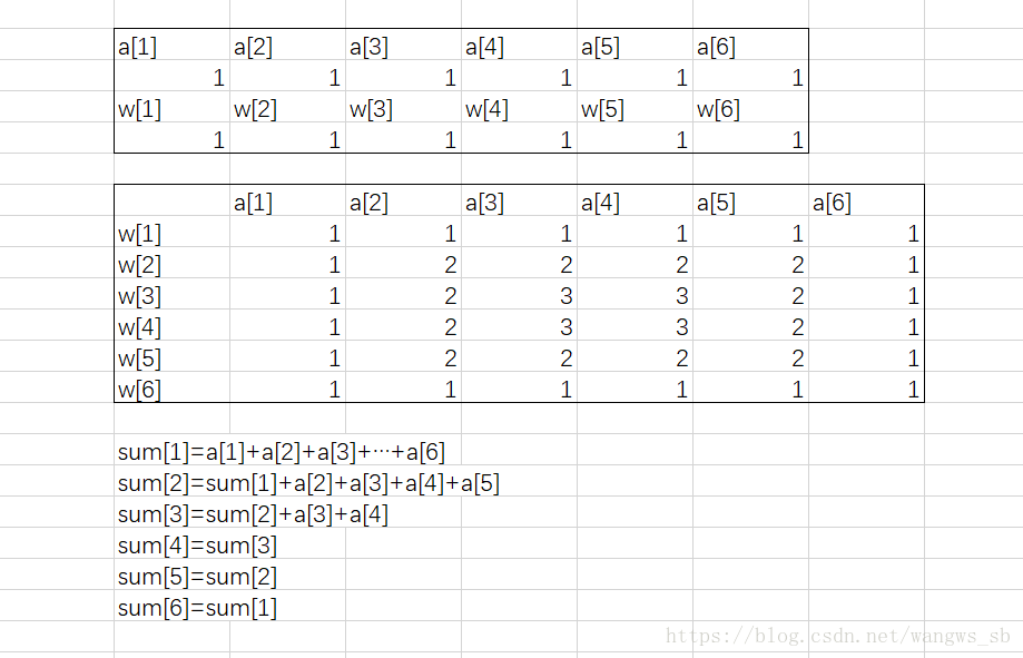 题解:对每一个w[i],算一下所有包含它的区间的a的和sum。