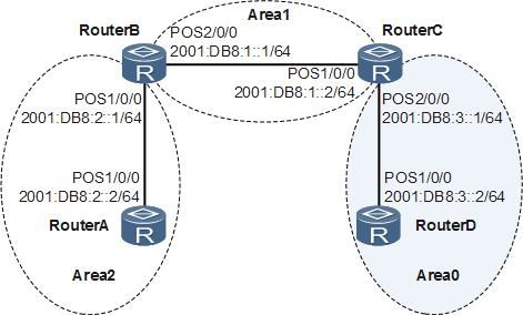 [RouterA-Pos1/0/0] ospfv3 1 area 2