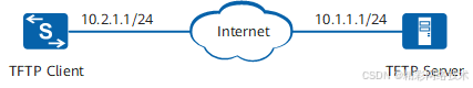 如图1所示,远端服务器提供TFTP Server功能,IP地址为10.1.1.1/24。设备作为TFTP客户端,IP地址为10.2.1.1/24,与服务器之间的路由可达。