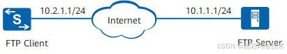 如图1所示,远端服务器提供FTP Server功能,IP地址为10.1.1.1/24。设备作为FTP客户端,IP地址为10.2.1.1/24,与服务器之间的路由可达。