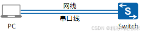 通过Console通信电缆和网线,将交换机与PC直连,实现组网的搭建。Console通信电缆与交换机Console口相连,网线与任意以太网口相连(本文以GigabitEthernet 0/0/1为例),如图1所示。