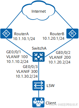 [SwitchA-Vlanif300] ip address 10.1.30.2 24