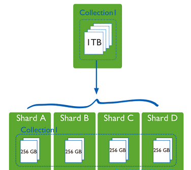 一台机器的一个数据表 Collection1 存储了 1T 数据,压力太大了!在分给4个机器后,每个机器都是256G,则分摊了集中在一台机器的压力。也许有人问一台机器硬盘加大一点不就可以了,为什么要分给四台机器呢?不要光想到存储空间,实际运行的数据库还有硬盘的读写、网络的IO、CPU和内存的瓶颈。在mongodb集群只要设置好了分片规则,通过mongos操作数据库就能自动把对应的数据操作请求转发到对应的分片机器上。在生产环境中分片的片键可要好好设置,这个影响到了怎么把数据均匀分到多个分片机器上,不要出现其中一台机器分了1T,其他机器没有分到的情况,这样还不如不分片!