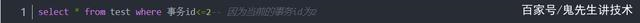 5、回到事务B,继续查询,应该还是只有1和2两条数据,那么他可能是这么查询的: