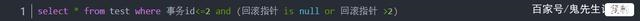 - 只查询未删除(回滚指针为空)或者回滚指针大于当前事务id的数据。(这里不能等于是因为假如自己的事务删除了一条数据,会生成数据的回滚指针为当前事务id,所以必须排除掉自己删除的数据)