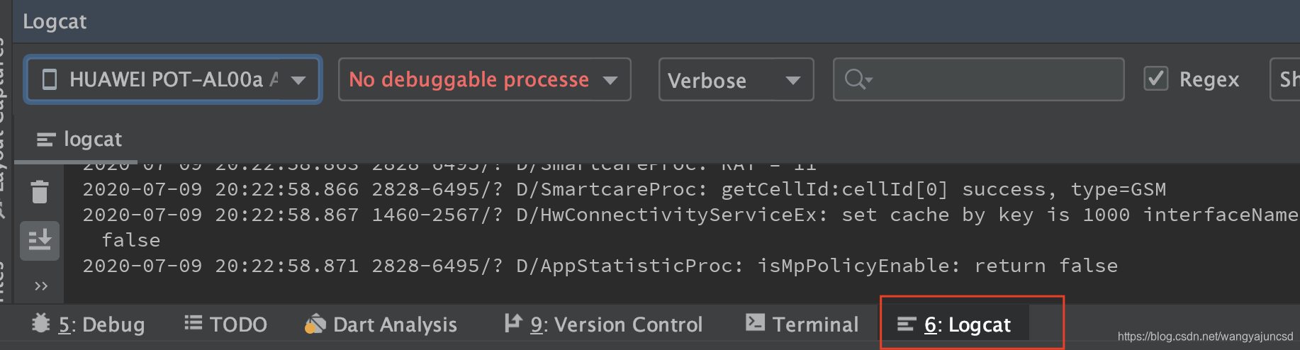但是在flutter项目运行的时候一般默认是没有Logcat的视窗,只看到run、terminal、Version Control等底部视窗,我一直以为没有Logcat视窗的。