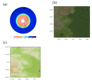 全球非均匀网格的运行:高分辨率网格中心的旋转;初、边界场文件的准备