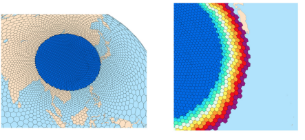 MPAS-A模式的大气动力内核求解的是完全可压的非静力学运动方程,其最显著的特点是非结构化的质心 Voronoi 网格。SCVT 网格为全球框架内的区域降尺度提供了机会,因为它允许网格从更粗的分辨率平滑地转换到更高分辨率,而不是使用嵌套来转换网格的传统区域气候模型 RCM(如 WRF)。