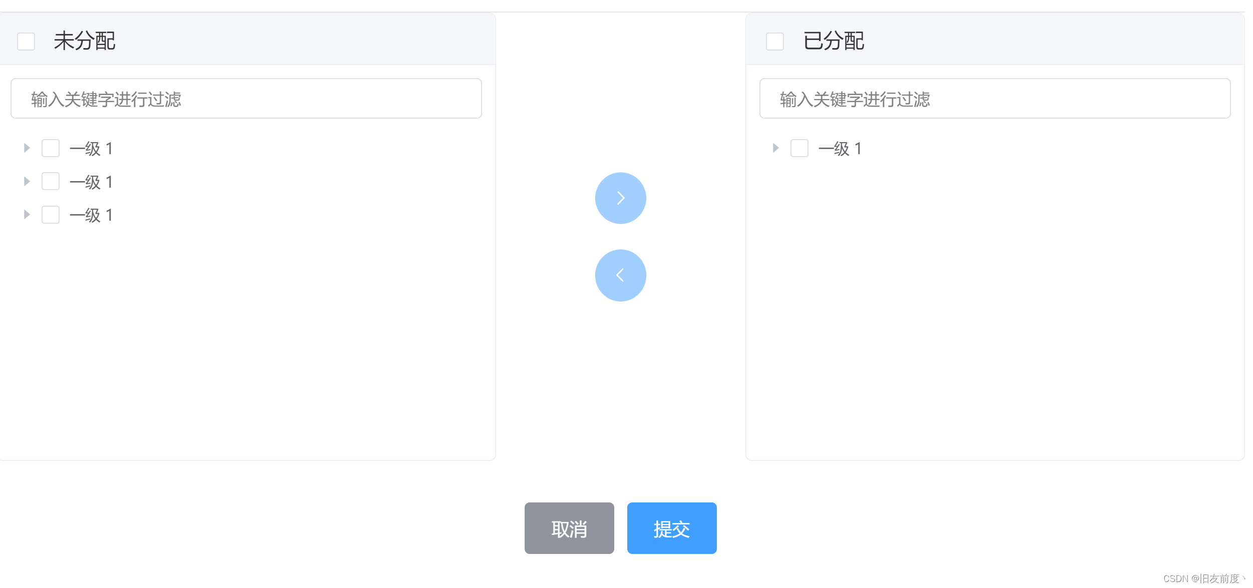 Slot: title-left, title-right 说明:穿梭框标题区左侧、右侧自定义内容