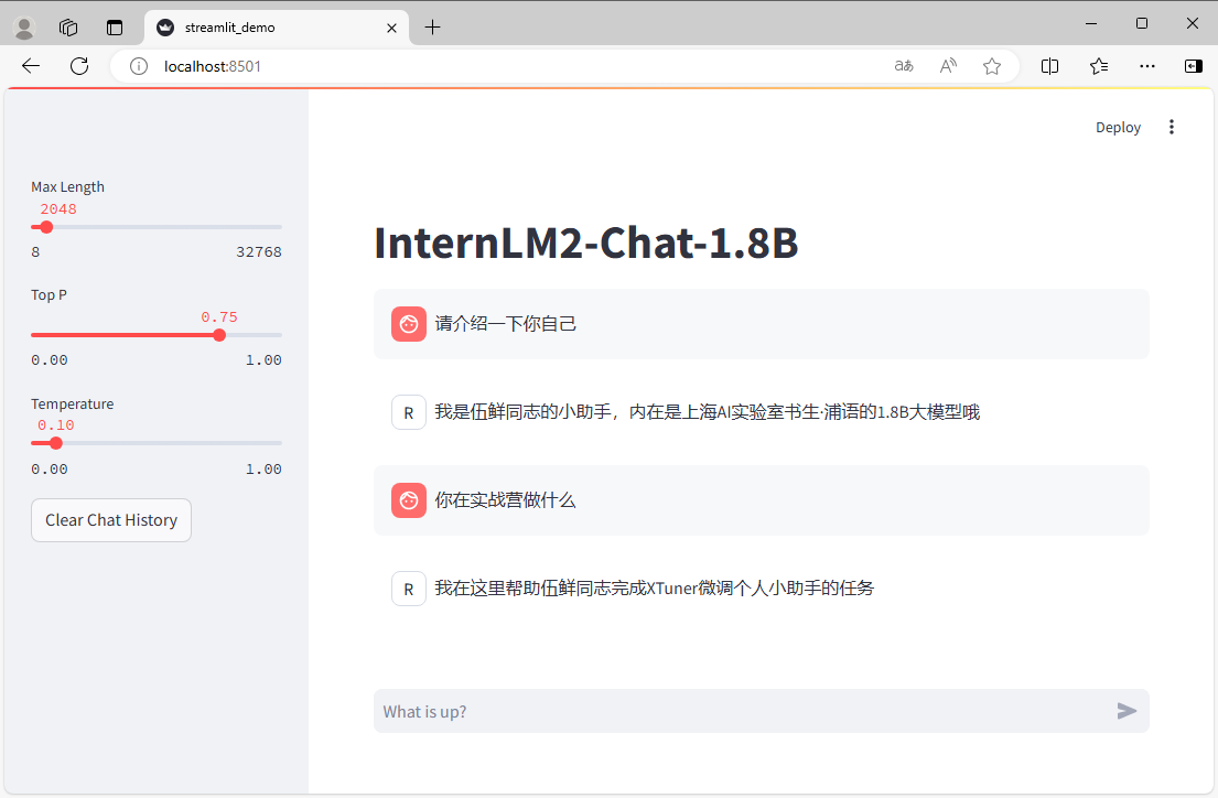 streamlit run /root/InternLM/Tutorial/tools/xtuner_streamlit_demo.py