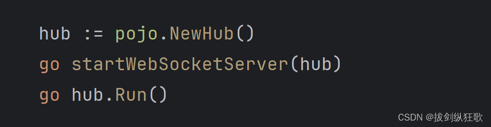 在代码中,我们在结构体中定义了两个管道,一个管道接收注册的客户端对象(原JoinHub方法),另一个管道接收注销的客户端对象(原DeleteFormHub方法);