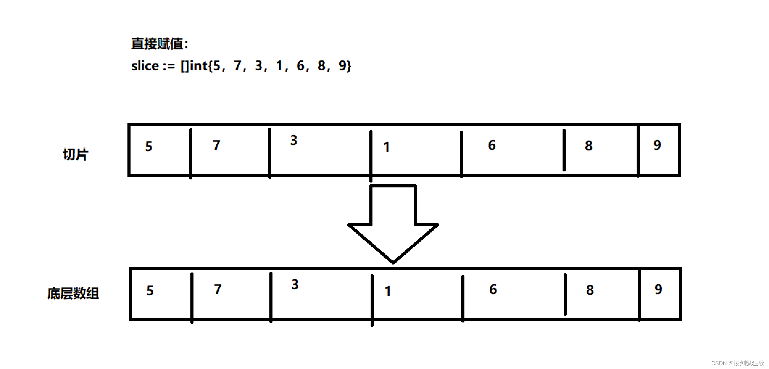- 直接赋值方式 slice:= []int{1,2,3,4,5}