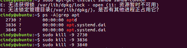 E:无法获得锁 /var/lib/dpkg/lock -open(11:资源暂时不用)