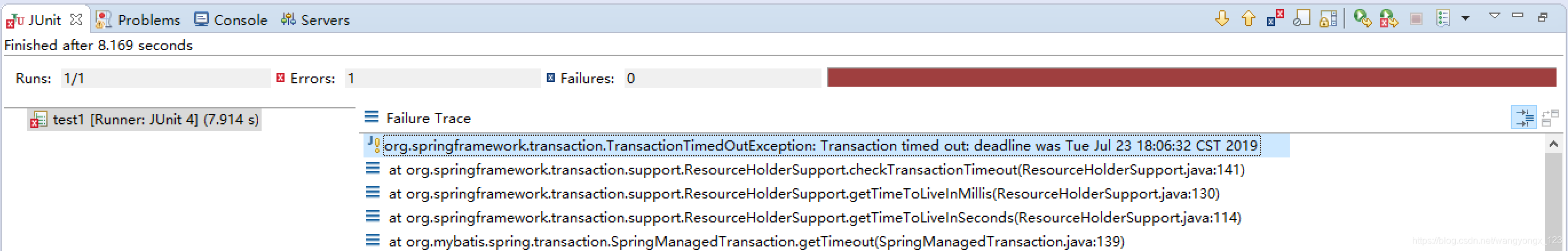 运行的时候,由于事务超时,就会报错 TransactionTimedOutException:....