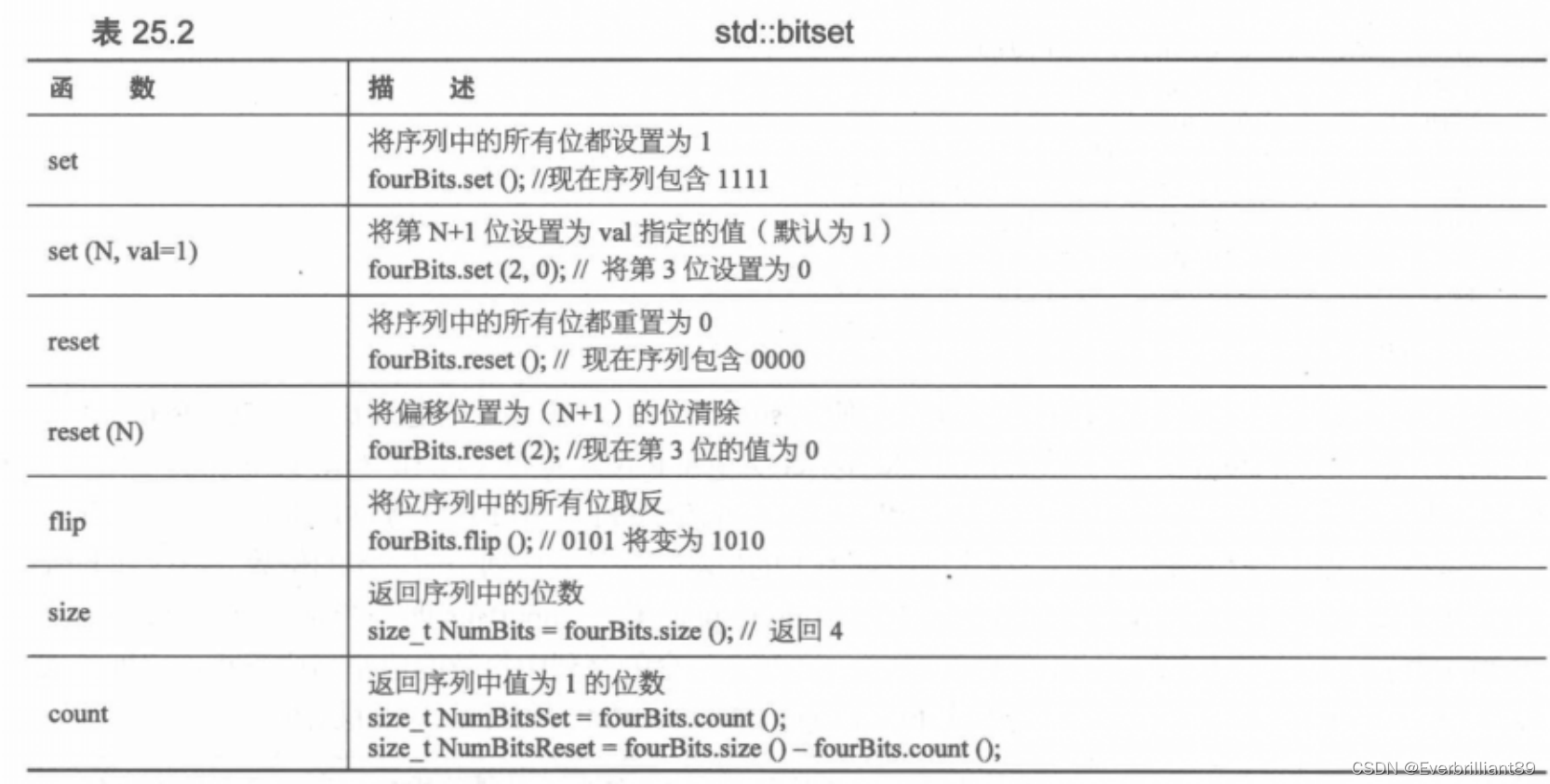 - std::bitset的成员方法: