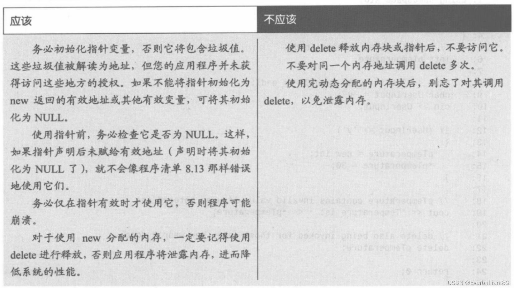 - 务必将指针初始化为NULL或有效的地址——如运算符new返回的地址;