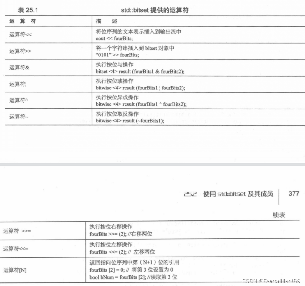 - std::bitset的运算符: