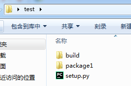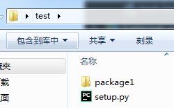 2、在其他位置创建一个test文件夹,将package1和setup.py模块复制进来,如下: