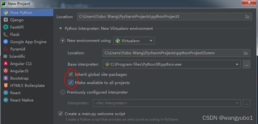 说明:一开始在使用此方法进行模块的发布和安装时,按照以上步骤进行安装,虽然cmd命令流显示安装成功,但在site-packages中并没有显示出package1包,后来在创建project时,将以下两项勾选后,即可发布及安装成功。