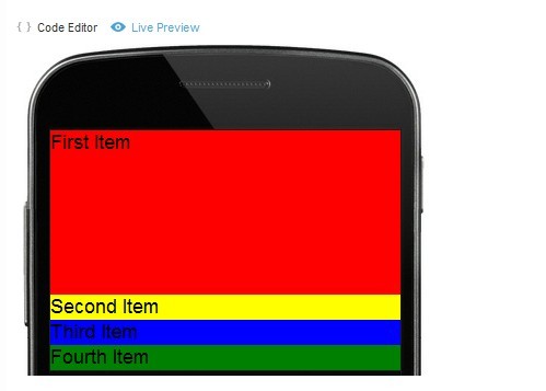 你可以把上面的代码复制到我们的code editor中去查看他的效果,然后改变各项的 flex去体验容器是怎么分配空间的。