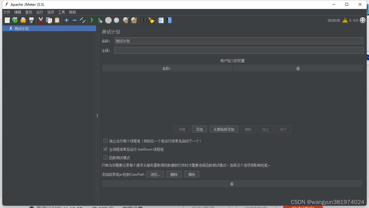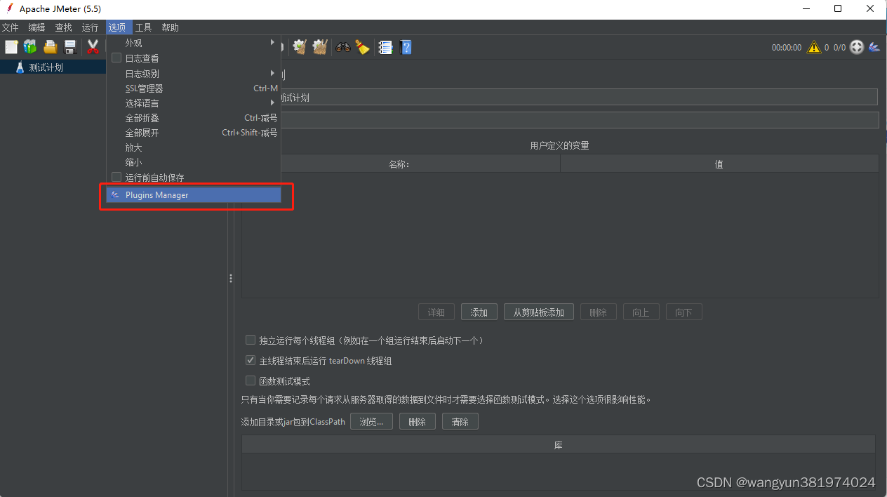 1、测试计划:测试脚本根节点,每一个测试脚本都是一个测试计划,是所有组件的容器。