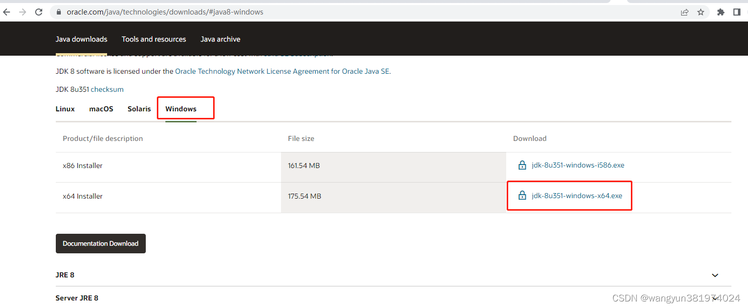 3、下载java1.8,地址:https://www.oracle.com/java/technologies/downloads/#java8