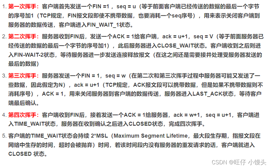 其实中间的ACK和FIN + ACK两步就足以证明为什么要4次挥手,关闭连接时,当收到对方的FIN报文时,仅仅表示对方不再发送数据了,但对方还能接收数据,而己方也未必将全部数据都发送给对方了,所以己方收到这个FIN报文之后处于CLOSE-WAIT状态,此时还可以发送一些数据给对方,发送完毕之后再发送FIN报文给对方来表示同意现在关闭连接。