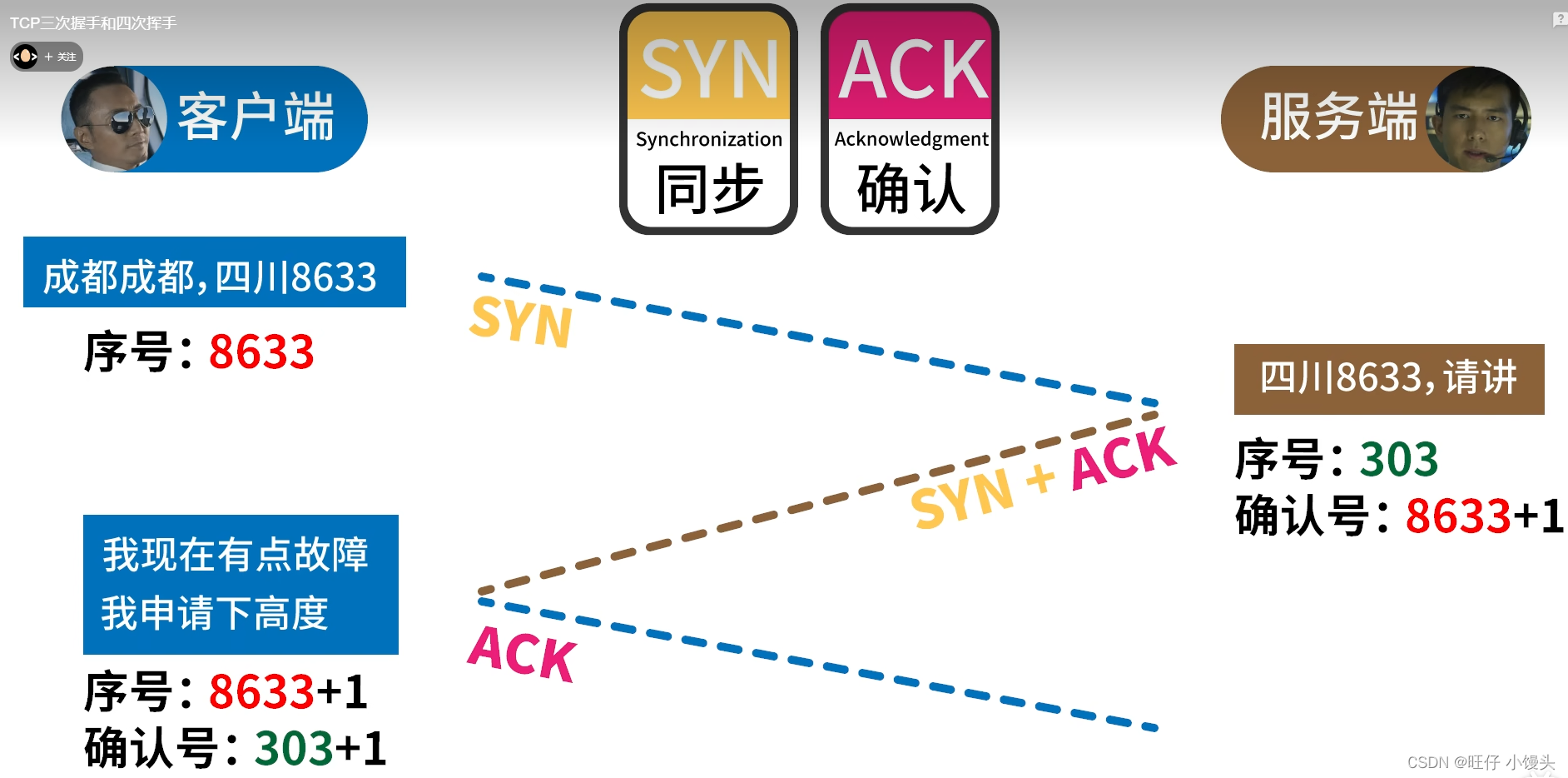 这样客户端在收到号码后-1就知道是不是自己发送的TCP报文了,最后客户端还需要确认,因为如果不确认的话(相当于两次握手),服务器不知道自己发送出去“确认同步”是否被接受。于是必须再发送一次TCP报文来使连接正式建立。