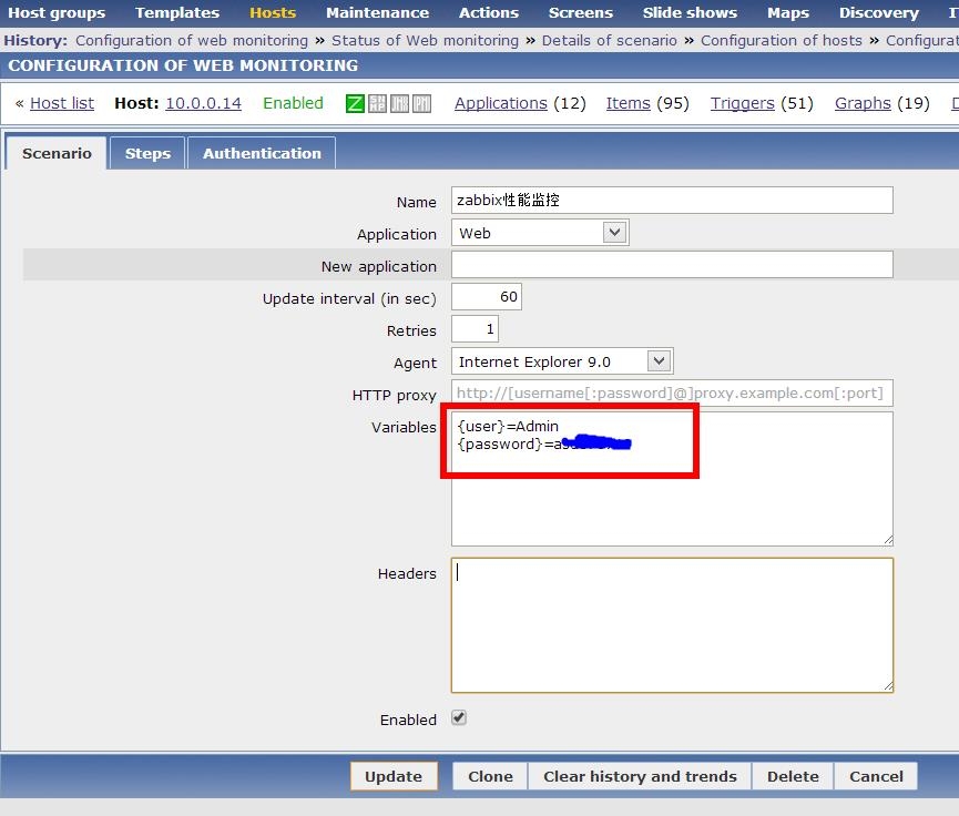 在这里我们填写好登录zabbix的用户名密码,设定为变量。