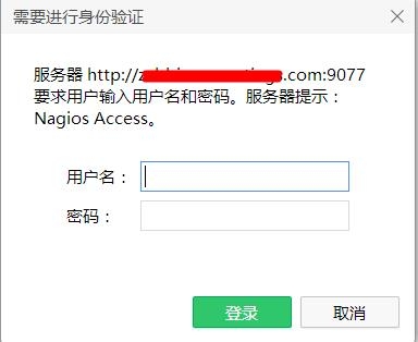 上面的监控是比较简单的监控,也是用的比较多的监控,但是有的时候我们访问的页面是需要登录认真的,就比如我们的监控nagios,他是有apache或者nginx提供的web服务,本身nagios没有登录验证功能,这就需要web服务设置验证功能,如果有认证需求,我们还是按照上面的配置两步就会出现问题,比如我做一个nagios认证页面的监控,平时访问网页的时候会跳出如下的认真框。