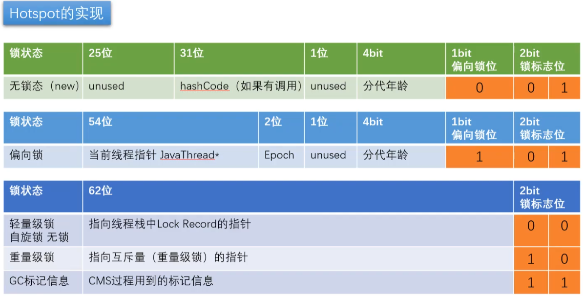 - 无锁、匿名偏向:当前对象没有作为锁存在。