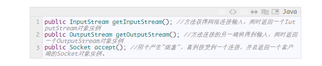注意:其中getInputStream和getOutputStream方法均会产生一个IOException,它必须被捕获,因为它们返回的流对象,通常都会被另一个流对象使用。