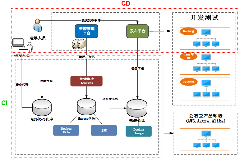持续集成(CI),微服务组件全部改造成容器化部署,并通过K8S实现编排。